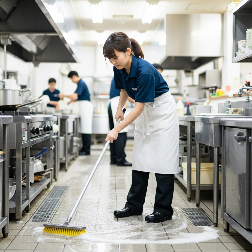 この方法を導入したお店では、清掃時間が40%削減され、スタッフの残業時間も大幅に減少。労働環境の改善にもつながりました。一度清掃すると、その後の清掃が非常に楽になります。